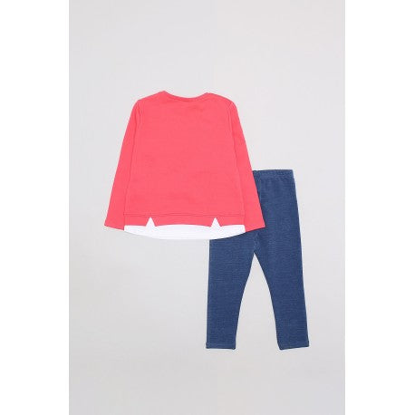Conjunto largo niña color unico, detalle ballena y flores-ALM-30121-STREET MONKEY
